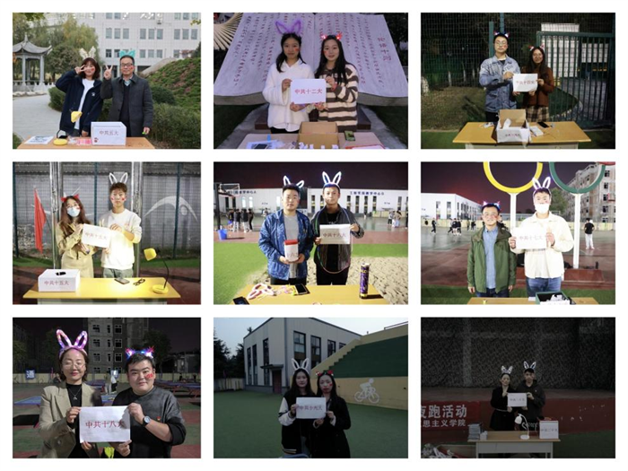 根据夜跑活动安排,在校园内设置二十个夜跑打卡点,分别对应党的一大至二十大,以“一大”作为起点,每个打卡点进行党史闯关答题,完成打卡(贴文化贴方可进行下一关),直至“党的二十大”夜跑结束。