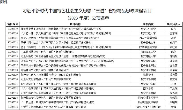 为进一步推进全国“大思政课”建设综合改革试验区陕西省试点工作,充分发挥我省高校理论研究优势,持续推动习近平新时代中国特色社会主义思想进教材、进课堂、进头脑,中共陕西省委教育工委关于习近平新时代中国特色社会主义思想“三进”省级精品思政课程项目(2023年度)申报工作,经专家评审,全省共40项课程项目获得立项建设。我校伟德国际VICTOR1946郭超妮副教授主持的《红色铁路文化资源融入“概论”课混合式教学模式研究》获得立项。