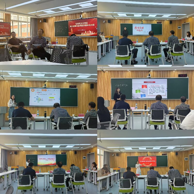 在比赛现场,参赛教师在赛前按其所报参赛课程,在教研室组织下进行了精心备课,优选参赛题目,围绕教材的重点难点,结合时代背景和学生实际,设计规范性和实效性的教学方案,比赛时通过现场教学形式呈现。比赛分两组进行,青年教师依次进行教学展示。他们的授课内容分别围绕马克思主义的基本特征、正确认识中国式现代化的重要特征、中国共产党的中流砥柱作用、实事求是——兴党兴国之魂、新民主主义革命的三大法宝等主题展开。精心的教学设计、精炼的教学语言,丰富的案例、互动的教学方式,将抽象的理论知识变得生动有趣,为现场的嘉宾评委展示了一堂堂思路清晰、内容充实、特色鲜明、感染力强的思政课,充分展现了青年教师过硬的专业能力和积极的精神风貌。