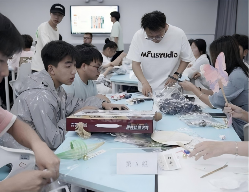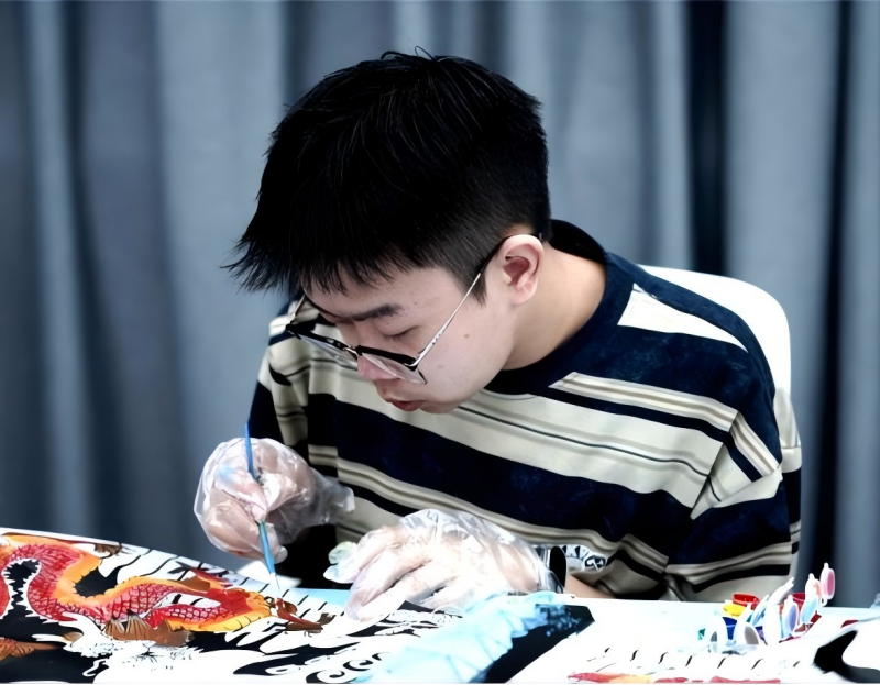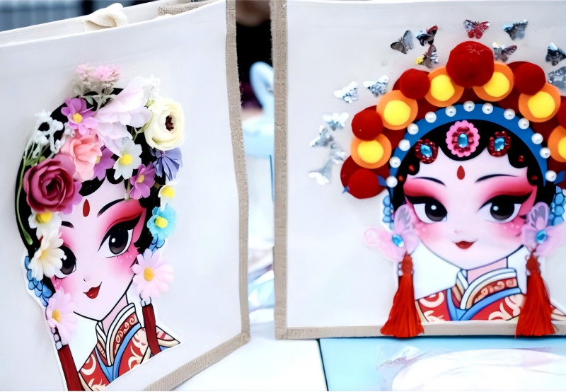 活动精彩纷呈、妙趣横生,融合了多种非遗元素的手工制作,涵盖非遗宝相花鼓灯、掐丝珐琅画、漆扇、京剧脸谱手工包、螺钿胸针、竹编风铃、国潮纸鸢等项目,同学们沉浸其中,体验非遗魅力。