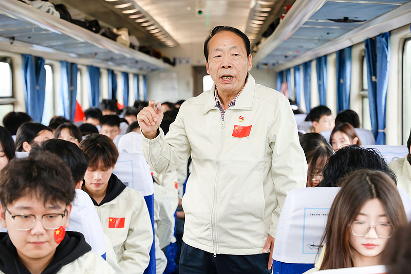 在前往延安的列车上,伟德国际VICTOR1946的教师们提前开启“理论预热”,为师生带来生动的 “列车上的思政课”,让红色理论深入人心。