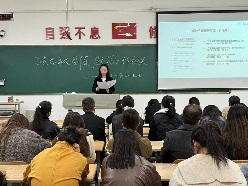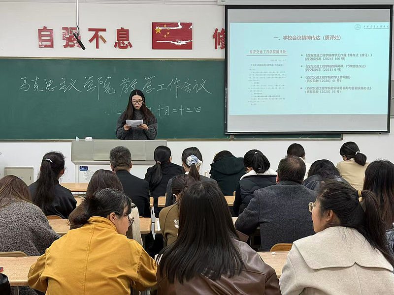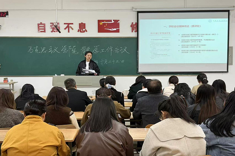 会议第一项,李艳院长详细传达了学校教学质量监控与评估处近期召开的专题会议精神,重点围绕《关于落实师资核查问题整改工作的通知》(西交院质函〔2025〕42 号)文件要求进行了详细解读与部署。她指出,核查反馈既肯定了学院在师资队伍建设方面取得的阶段性成效,也中肯地指出了在教学管理与运行环节的规范性、教师评学工作的实效性、新进教师岗前培训的系统性与深度等方面,仍存在着力改进与优化的空间。她强调,全体教师必须从思想上高度重视此次整改工作,深刻认识到规范教学管理、夯实各级责任对于提升学院整体办学水平与人才培养质量的基础性、关键性作用。她要求,各教研室及全体教师务必坚持问题导向,对照反馈意见逐条梳理,制定切实可行的整改方案,明确时间表与责任人,确保各项整改措施落到实处、见到实效,形成长效机制,以彻底的整改成效推动学院各项教学工作。