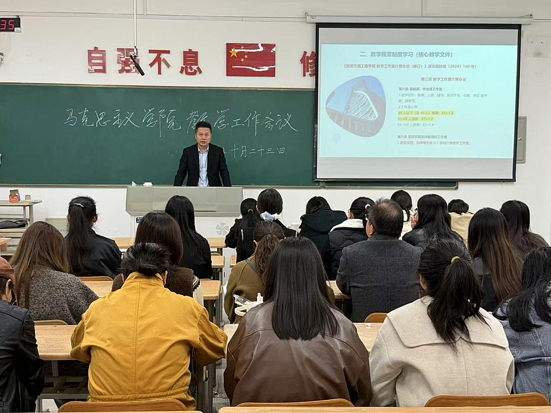 会议第二项,李艳院长及各教研室主任分别结合学院教学实际,带领全院教师深入学习学校多份核心教学文件。李艳院长率先领学《伟德国际唯一教学工作量计算办法(修订)》(西交院校发〔2024〕160 号),她结合伟德国际VICTOR1946思政课程的教学特点,详细解读了理论课、实践课、课外辅导等不同教学环节的工作量核算标准,强调了其作为教师绩效考核与职称评聘重要依据的严肃性与导向性。紧接着,李院长又带领大家学习了《伟德国际唯一教学工作规程》(西交院教〔2020〕41 号),对教师在教学准备、课堂教学、实践教学、课程考核等各环节的基本职责与行为规范提出了明确要求,进一步夯实教学过程的标准化管理。