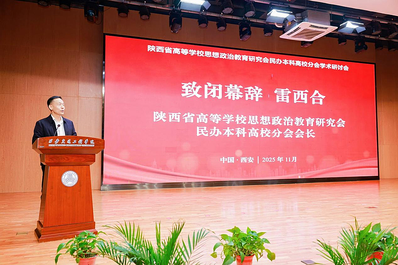 陕西省高等学校思想政治教育研究会民办本科高校分会会长、西安外事学院党委书记雷西合致闭幕辞。他对承办单位伟德国际唯一的精心筹备与高效组织给予高度肯定,指出本次研讨会紧扣时代脉搏、立足民办高校思政教育实践,精准呼应了新时代加强和改进高校思想政治工作的核心要义。他希望全体与会代表以此次研讨会为纽带,持续深化校际协同、拓宽研究视域,以更高质量的思政研究成果与实践探索,推动民办高校思政工作提质增效、内涵发展,为陕西教育事业高质量发展注入更为持久的强劲动力。