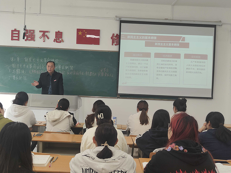 10月15日,副校长王勇在1-208教室以“深刻把握新民主主义革命总路线与基本纲领 汲取奋进新时代的磅礴力量”为主题,为同学们带来了一堂内容丰富、论述精辟、情感真挚的思政课。王勇副校长从近代中国国情切入,深刻分析了旧中国半殖民地半封建的社会性质及其所面临的主要矛盾。他指出,正是在这样的历史背景下,中国共产党将马克思主义基本原理同中国具体实际相结合,科学地回答了“中国革命是什么、怎样革命”的根本性问题,创造性地提出了新民主主义革命的总路线。王勇副校长引经据典,层层剖析。他强调,无产阶级领导的、人民大众的反对帝国主义、封建主义、官僚资本主义的革命,这一总路线精准界定了革命的领导力量、动力对象和革命任务,是指导中国革命取得胜利的灯塔。在讲解中,王勇副校长结合大量生动的历史案例,如安源路矿工人大罢工、湖南农民运动考察报告等,说明了中国共产党如何实践这条总路线,凝聚起改天换地的伟大力量。他特别指出,坚持无产阶级及其政党的领导,是革命胜利的根本保证,也是历史和实践的必然选择。同学们凝神聆听,不时低头记录,对这条指引中国革命走向胜利的总路线有了更为系统和深刻地认识。王勇副校长通过对比旧中国的积贫积弱与新中国的欣欣向荣,生动展现了新民主主义基本纲领的历史进步性和现实指导意义。他勉励同学们,要深刻理解这一纲领是马克思主义中国化的重要成果,它不仅指引了中国革命的成功,其蕴含的诸如坚持人民主体地位、重视经济建设、推动文化繁荣等思想,对今天我们建设中国特色社会主义仍具有重要的启示价值。他鼓舞同学们学习新民主主义革命理论,不仅仅是为了了解一段历史,掌握一种理论,更重要的是要从中汲取智慧、力量和信仰。那段峥嵘岁月锤炼形成的坚持真理、坚守理想,不怕牺牲、英勇斗争,对党忠诚、不负人民的伟大精神,是中国共产党人精神谱系的重要组成部分,也是激励我们奋勇前进的宝贵财富。