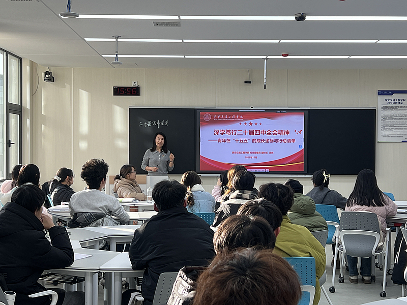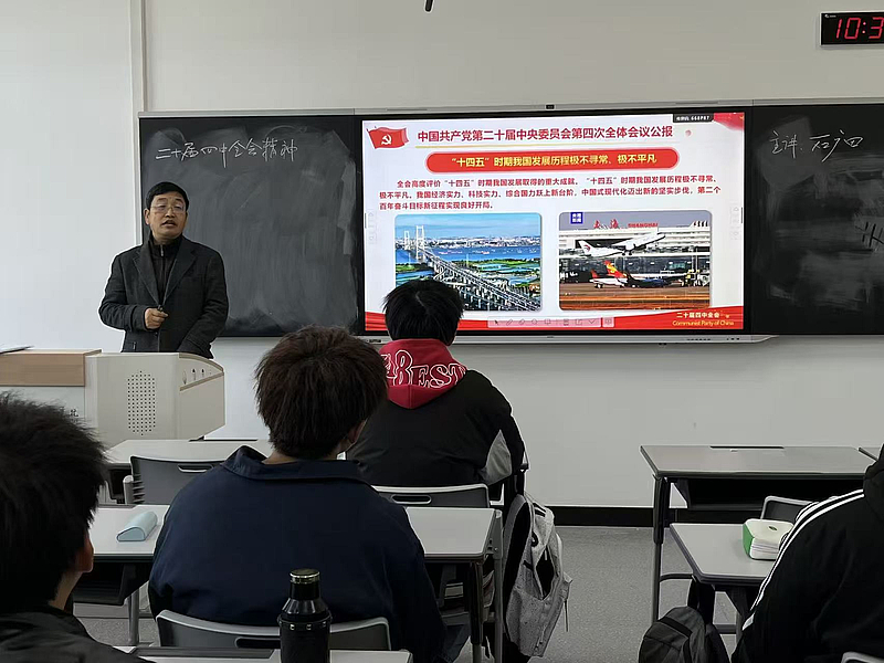 11月26日,副校长石广田为交通运输2502班学生讲授了一堂主题为“学习党的二十届四中全会精神 做好‘十五五’学校发展规划”的形势与政策课。石广田副校长首先从“十四五”时期我国发展历程极不寻常和极不平凡、“十五五”时期是基本实现社会主义现代化的关键时期、“十五五”时期经济社会发展指导思想、“十五五”时期经济社会发展必须遵循的原则、“十五五”时期经济社会发展主要目标、“十五五”时期经济社会发展重要部署、全党全国各族人民团结起来为实现“十五五”规划而奋斗七个方面为学生分析了中国共产党第二十届中央委员会第四次全体会议公报的相关内容。结合我校校情,他从规划背景和指导思想、总体目标、保障措施几个方面为学生讲解了我校学科和专业“十五五”发展规划纲要。石广田副校长寄语同学们,要深刻领会党的二十届四中全会精神与“十五五”发展要义,将个人成长融入国家与学校发展大局,立足专业锤炼本领,为学校“十五五”建设和交通事业发展贡献力量。同学们深受鼓舞,明晰了个人与国家、学校的紧密联系,决心以饱满热情钻研专业知识,成长为有家国情怀、专业素养的新时代青年。