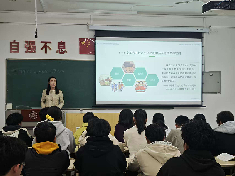 校长助理、教务处处长潘春辉为学生讲授思政课