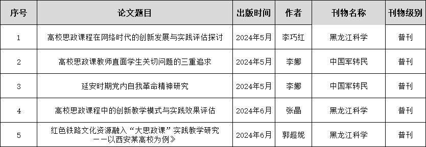 2024年思想政治理论课教师发表论文一览表