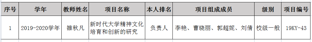 2019-2020学年思想政治理论课教师教学科研立项一览表