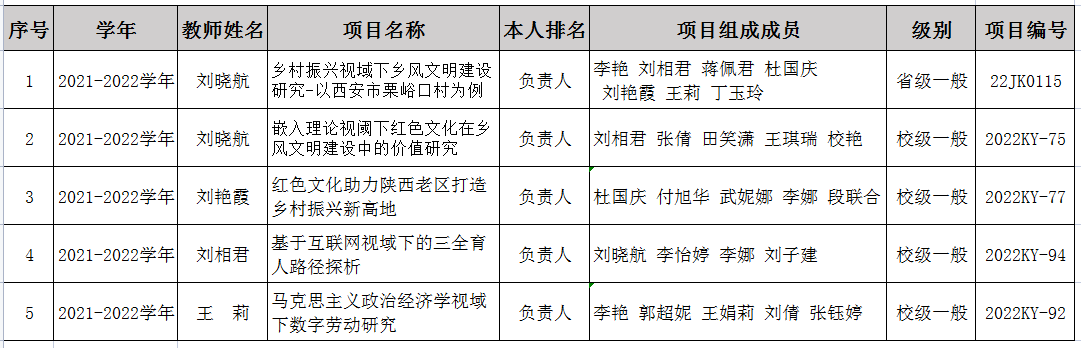 2021-2022学年思想政治理论课教师教学科研立项一览表