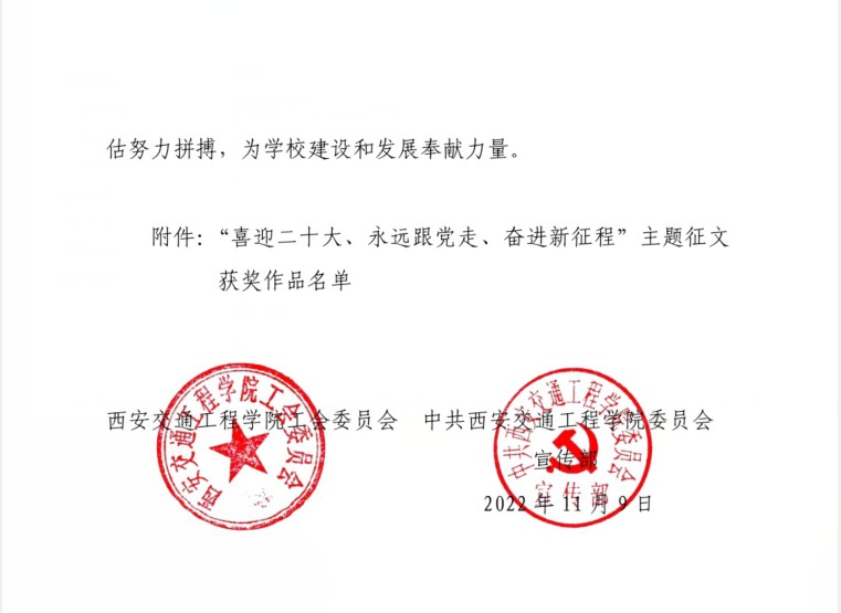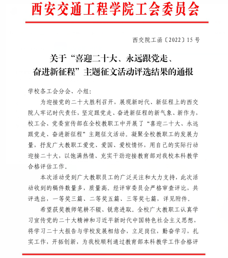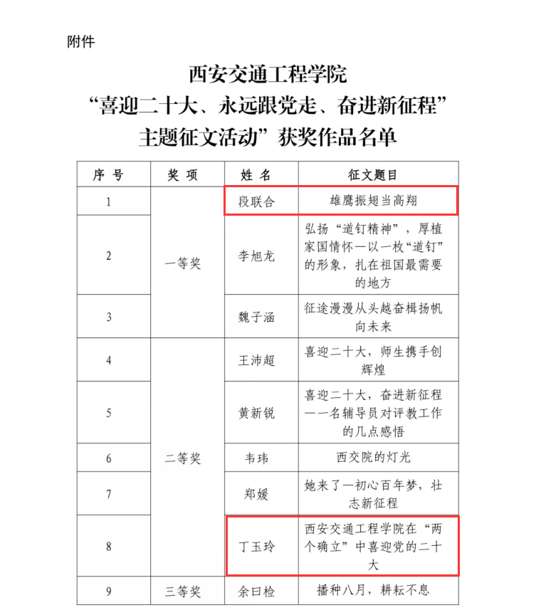 祝贺段联合、丁玉玲两位教师获得“喜迎二十大、永远跟党走、奋进新征程” 主题征文活动一等奖、二等奖