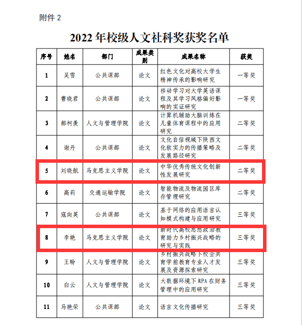 祝贺刘晓航、李艳获得2022 年校级人文社科奖二等奖和三等奖
