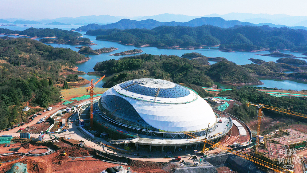 △1月10日,浙江杭州,2022年亚运会淳安场地自行车馆正加紧建设中,争取今年3月底前完成竣工验收。
