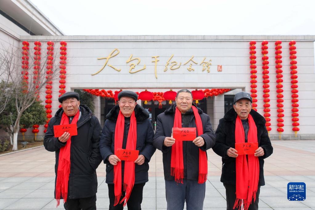 2022年1月26日,在安徽省凤阳县小岗村,“大包干”带头人展示自家领取的分红红包。新华社记者 曹力 摄